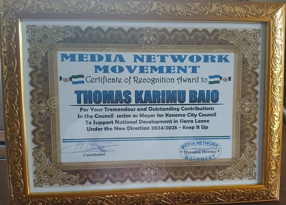 Thomas Karimu Baio is the current Mayor of Kenema City Council, a city with a population of over 255,110 inhabitants. He is the first mayor in the history of Sierra Leone’s local councils—specifically in Kenema City—to have been elected and re-elected, thereby serving two consecutive terms, amounting to ten years since the re-establishment of local councils in the country.