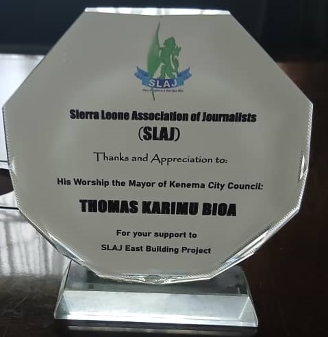 The 2019 Award from the Sierra Leone Association of Journalists (SLAJ) for his remarkable leadership.